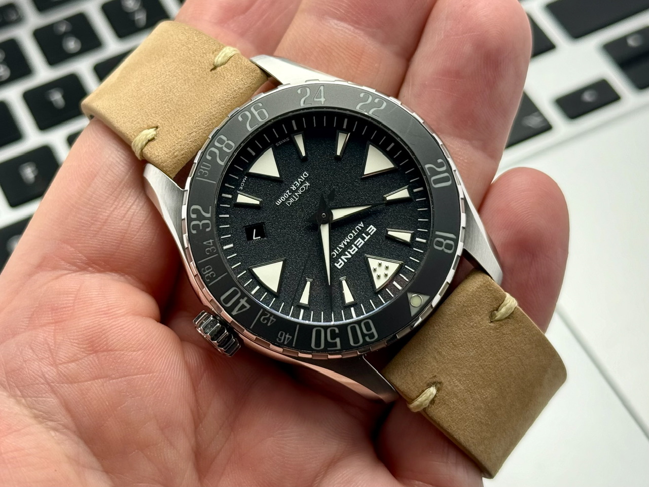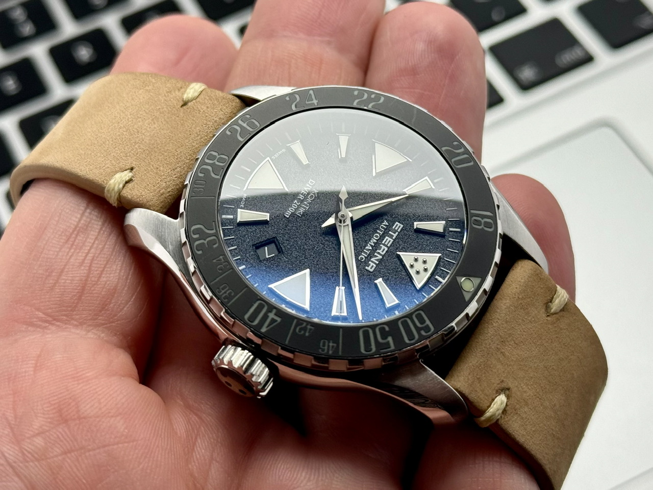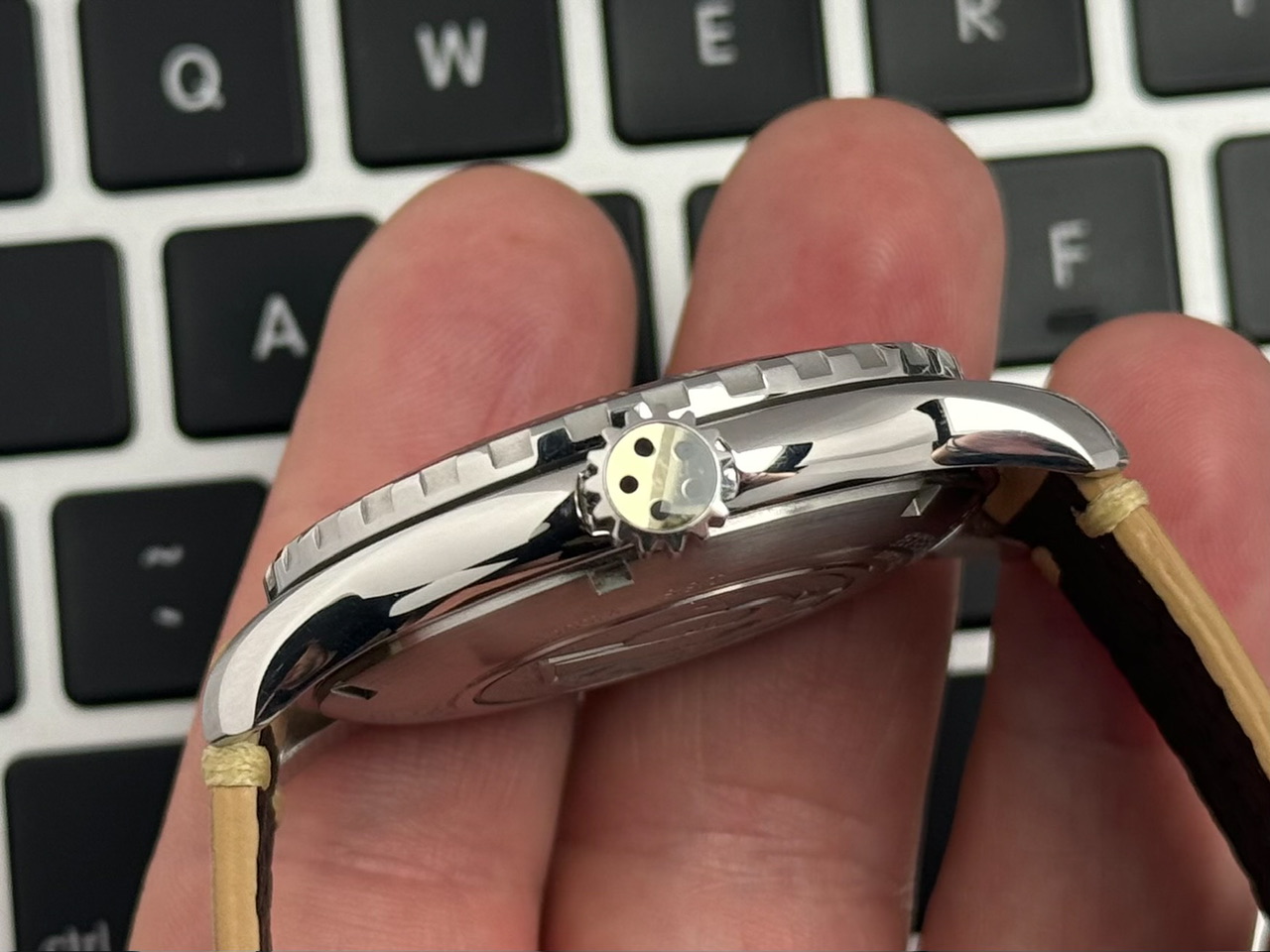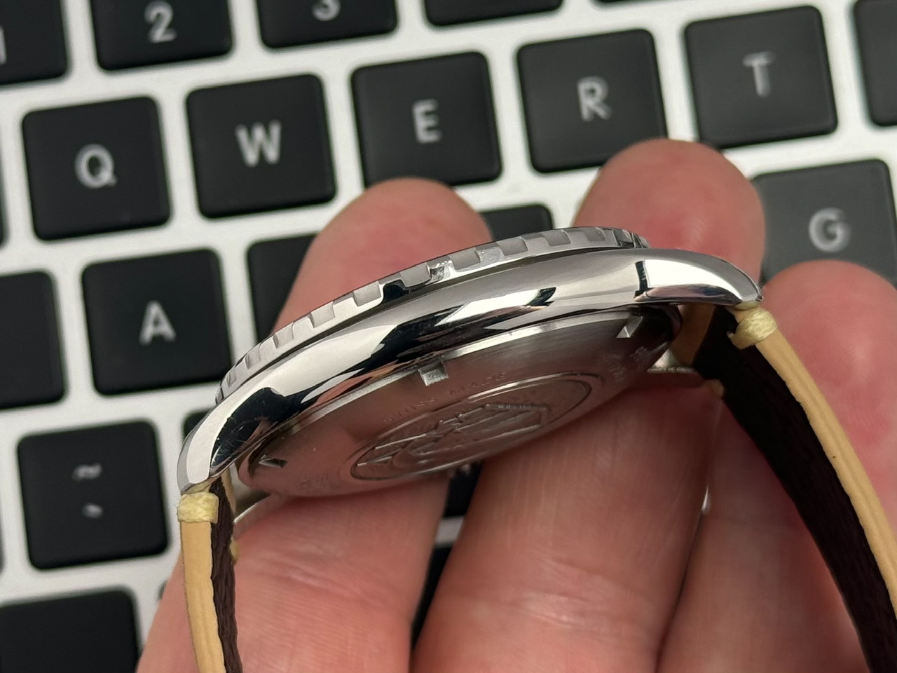 Koperta stalowa w rozmiarze 44mm nie licząc koronki z ceramiczną wkładką bezela. Zachowana w bardzo dobrym stanie.
