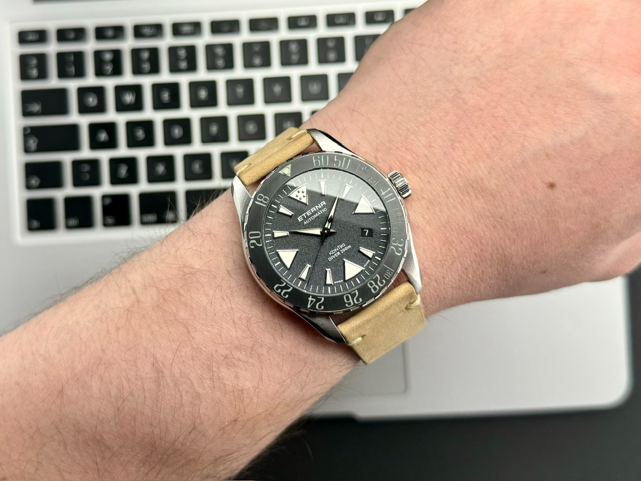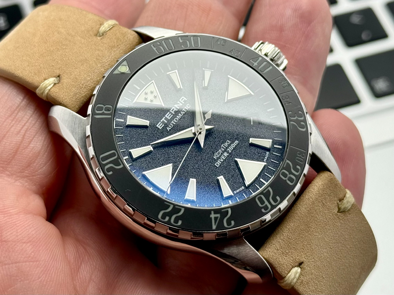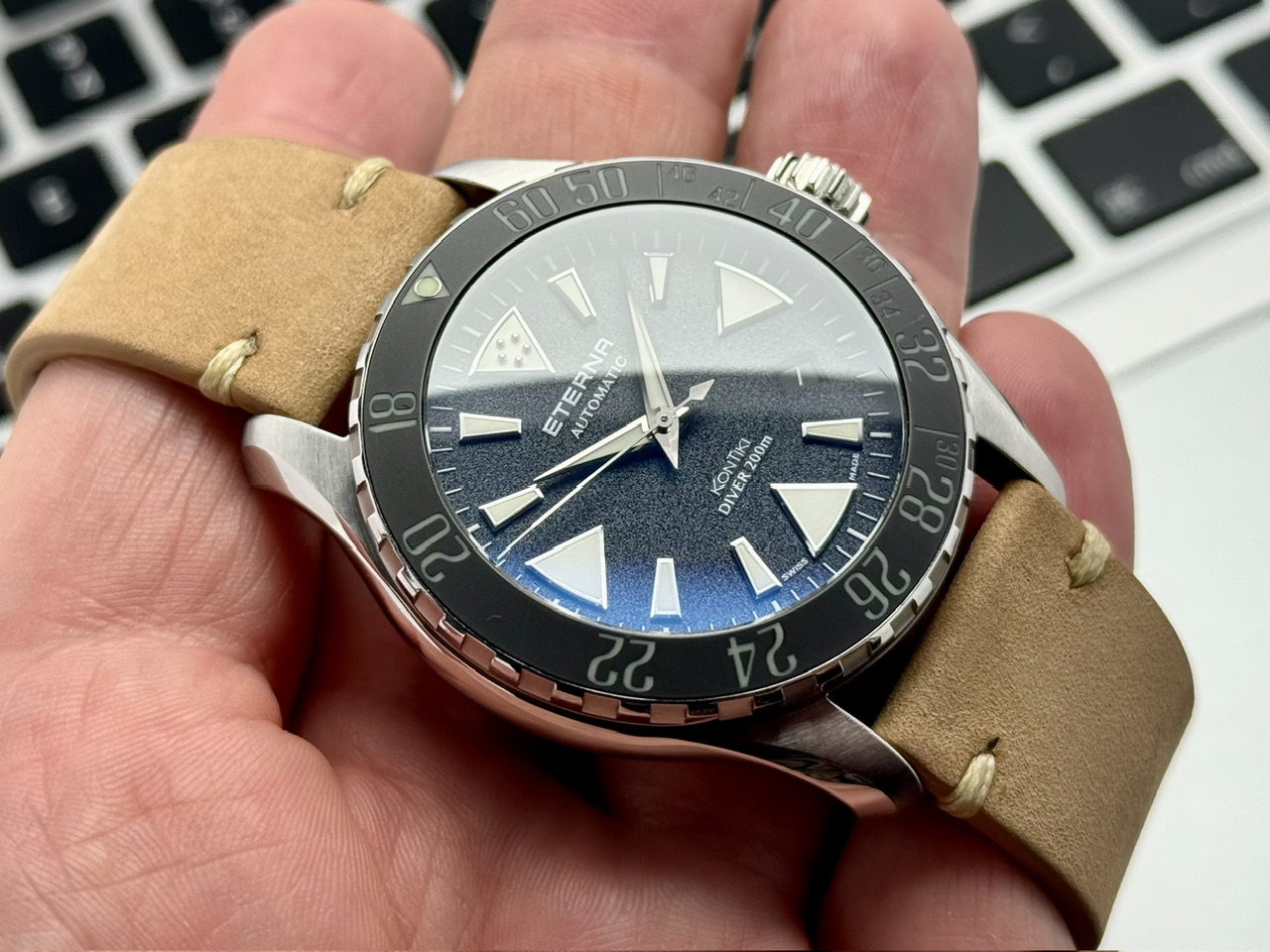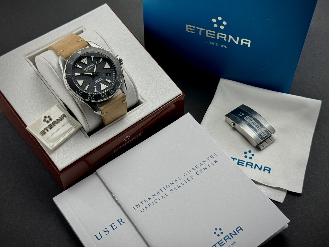 Koperta stalowa w rozmiarze 44mm nie licząc koronki z ceramiczną wkładką bezela. Zachowana w bardzo dobrym stanie.