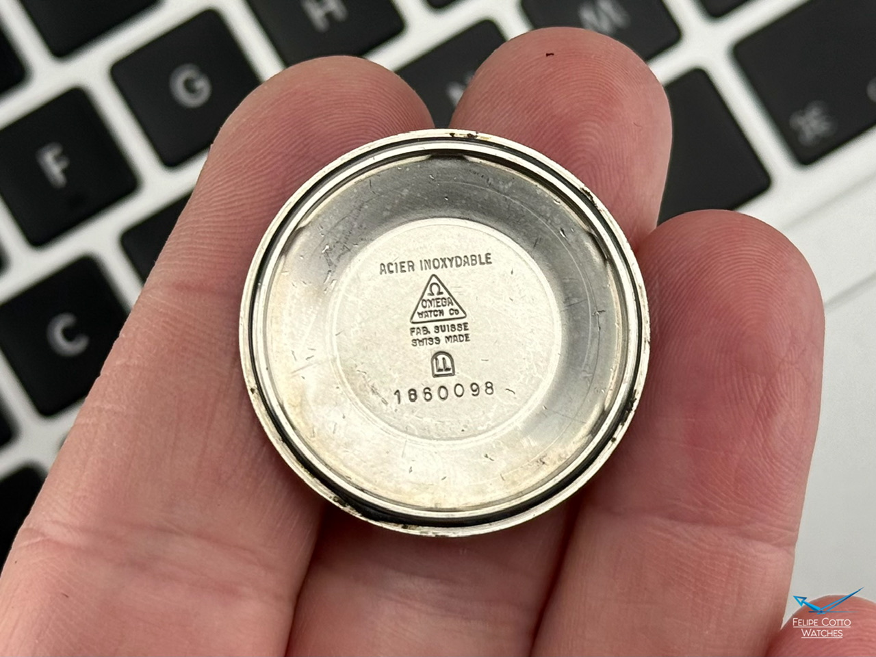 Koperta stalowa w rozmiarze 35mm szerokości nie licząc koronki. Zachowana w bardzo dobrym stanie, z normalnymi śladami używania.