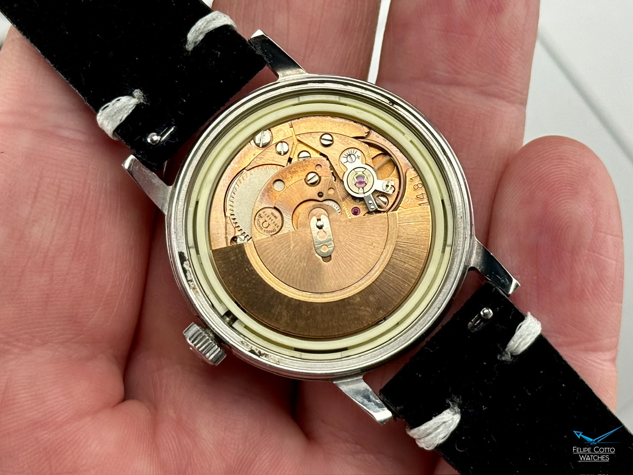 W środku mechanizm automatyczny cal. 1481. Sprawny, na dobrym chodzie (ostatnie zdjęcie), szybka zmiana daty na przycisk działa jak trzeba, jednak z nieznaną historią serwisową.