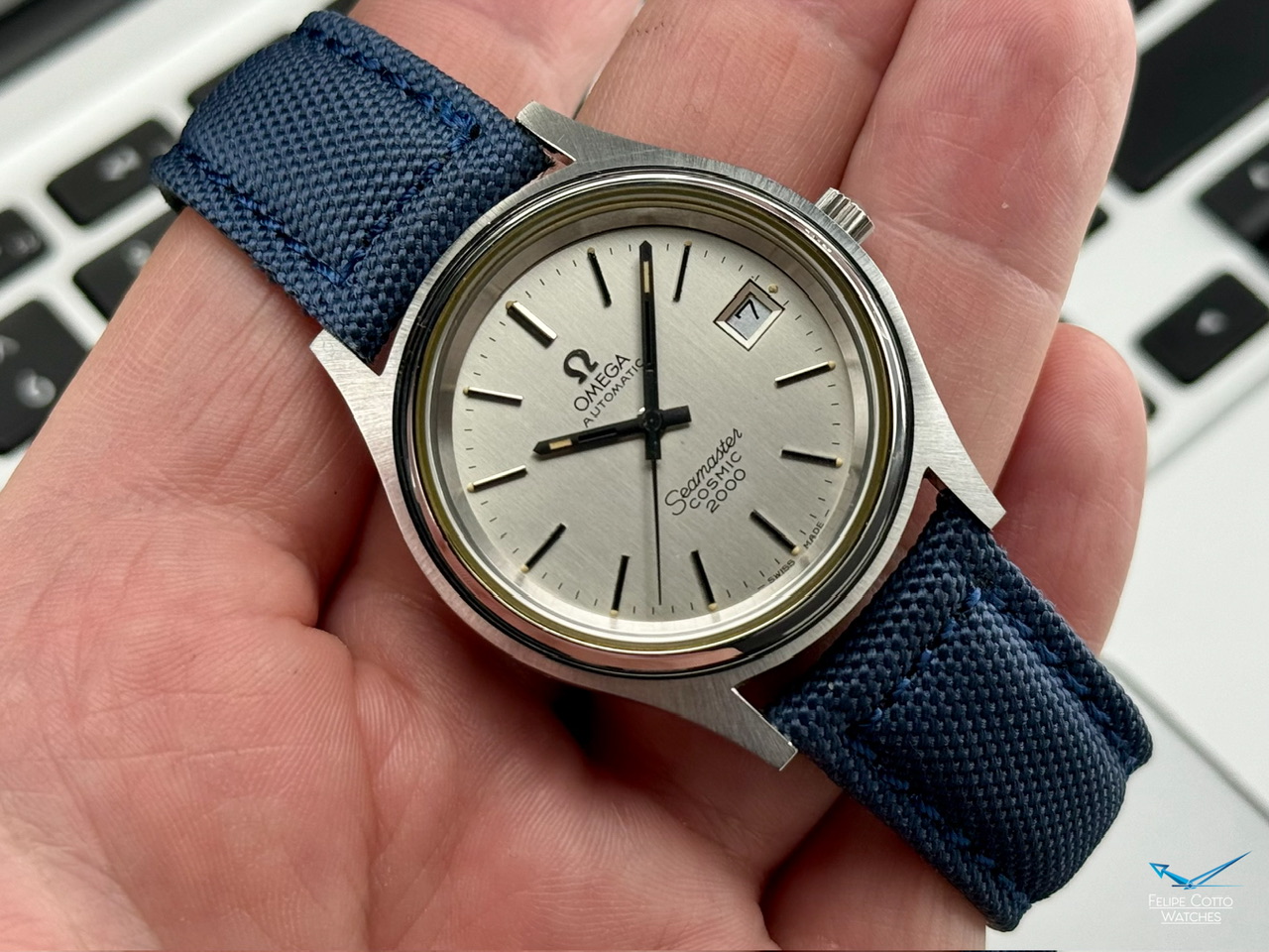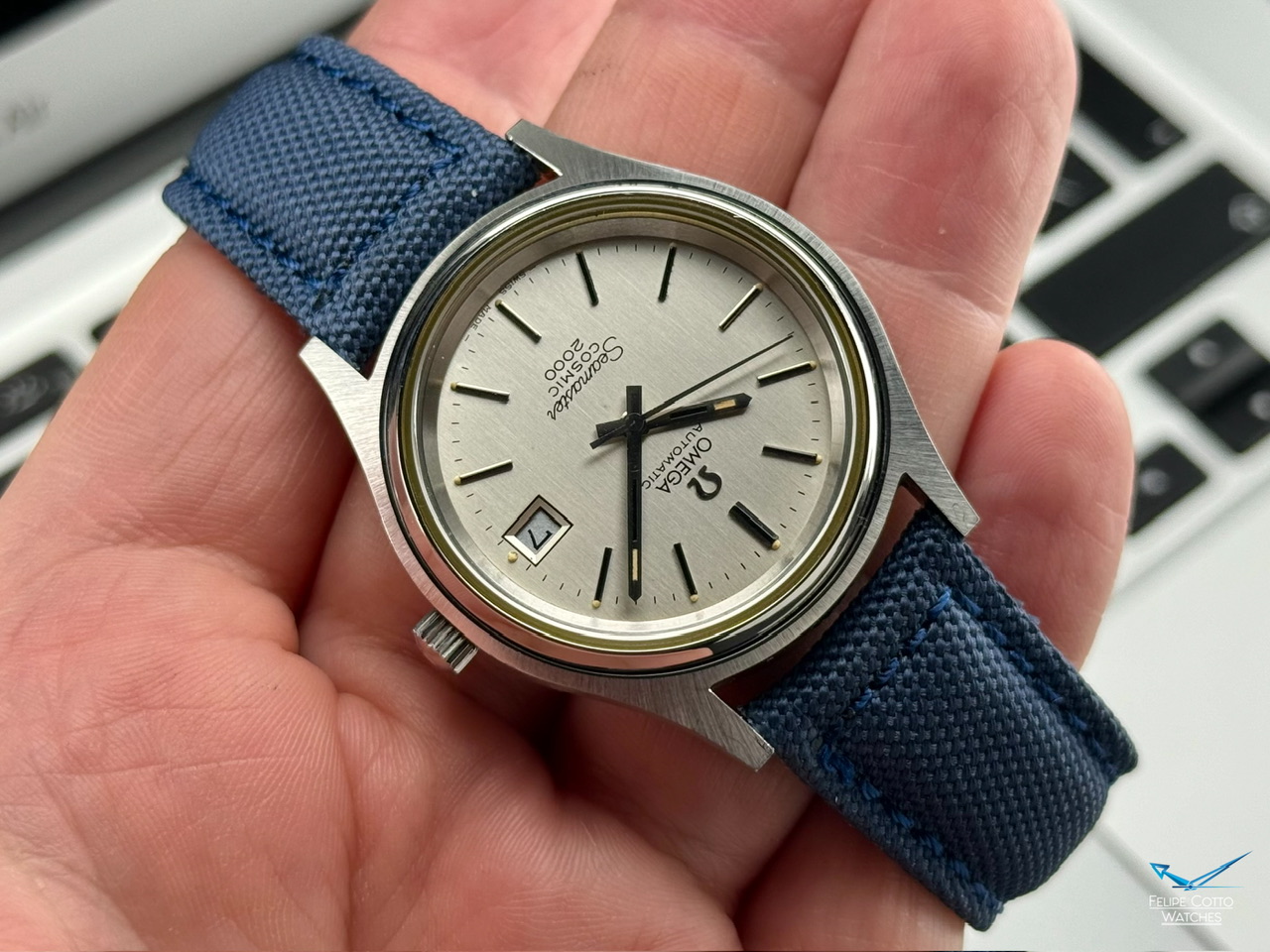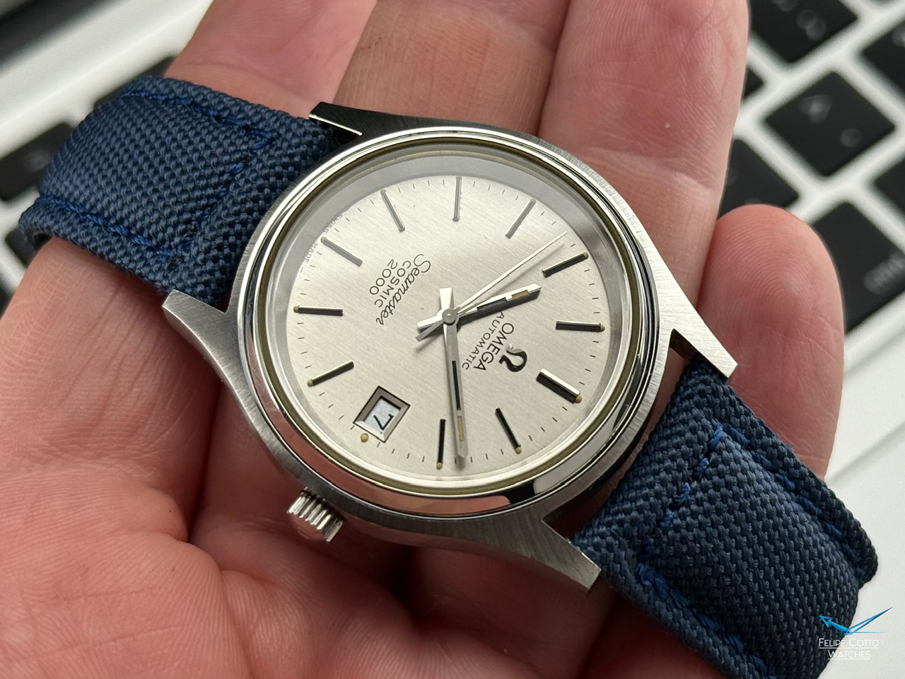 Oryginalna, biała tarcza z nakładanymi indeksami i pionowymi szlifami w bardzo dobrym stanie.