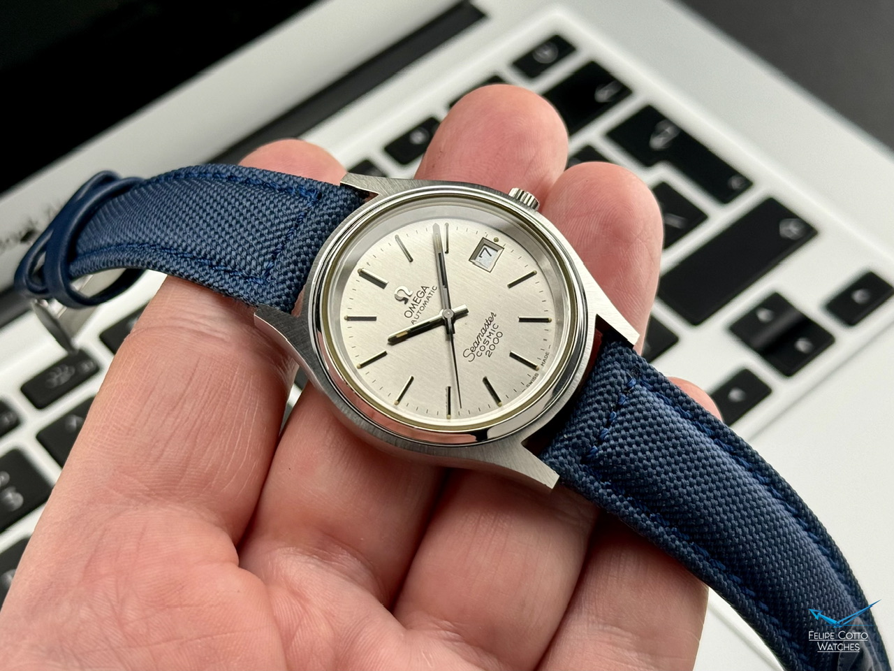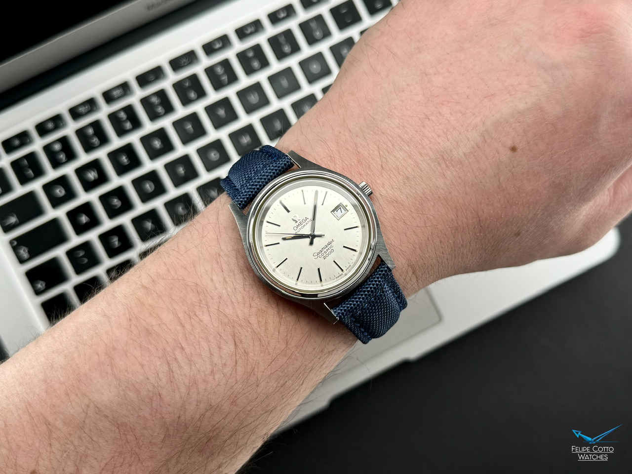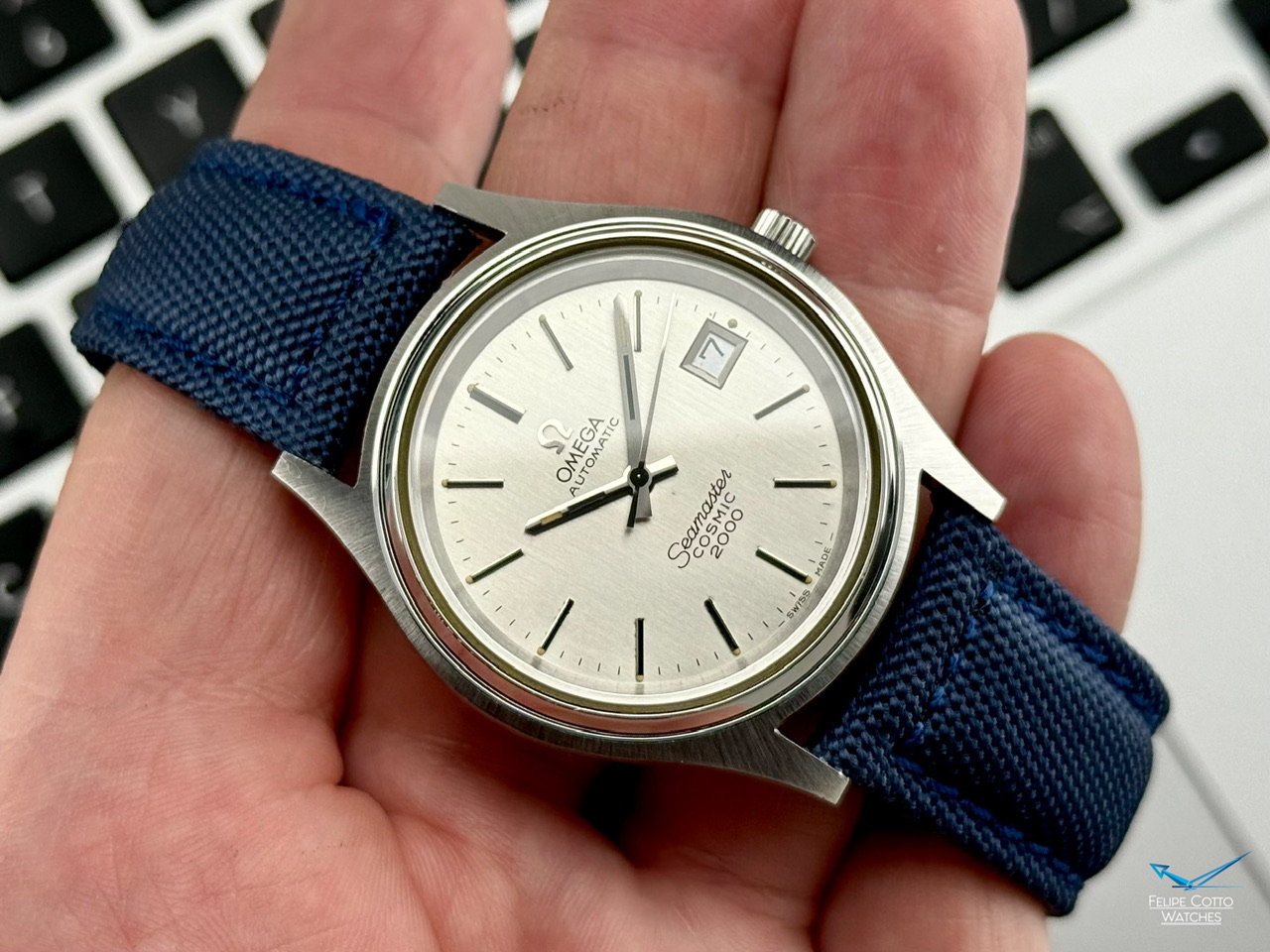 Oryginalna, biała tarcza z nakładanymi indeksami i pionowymi szlifami w bardzo dobrym stanie.