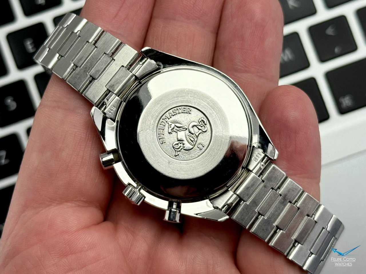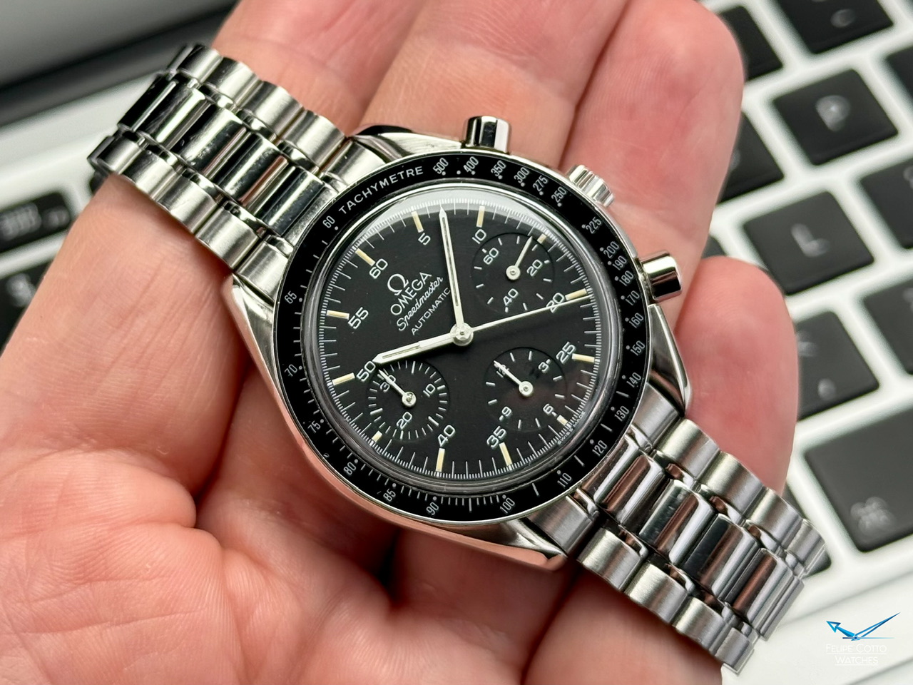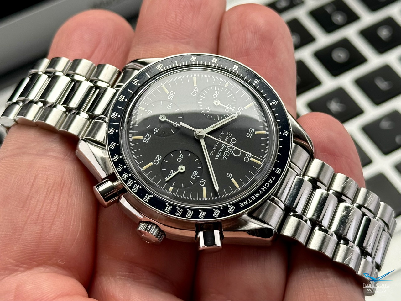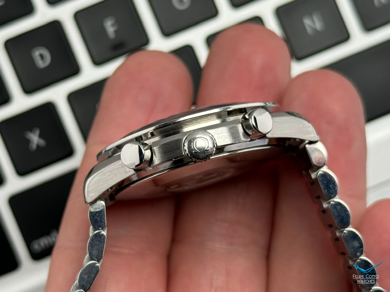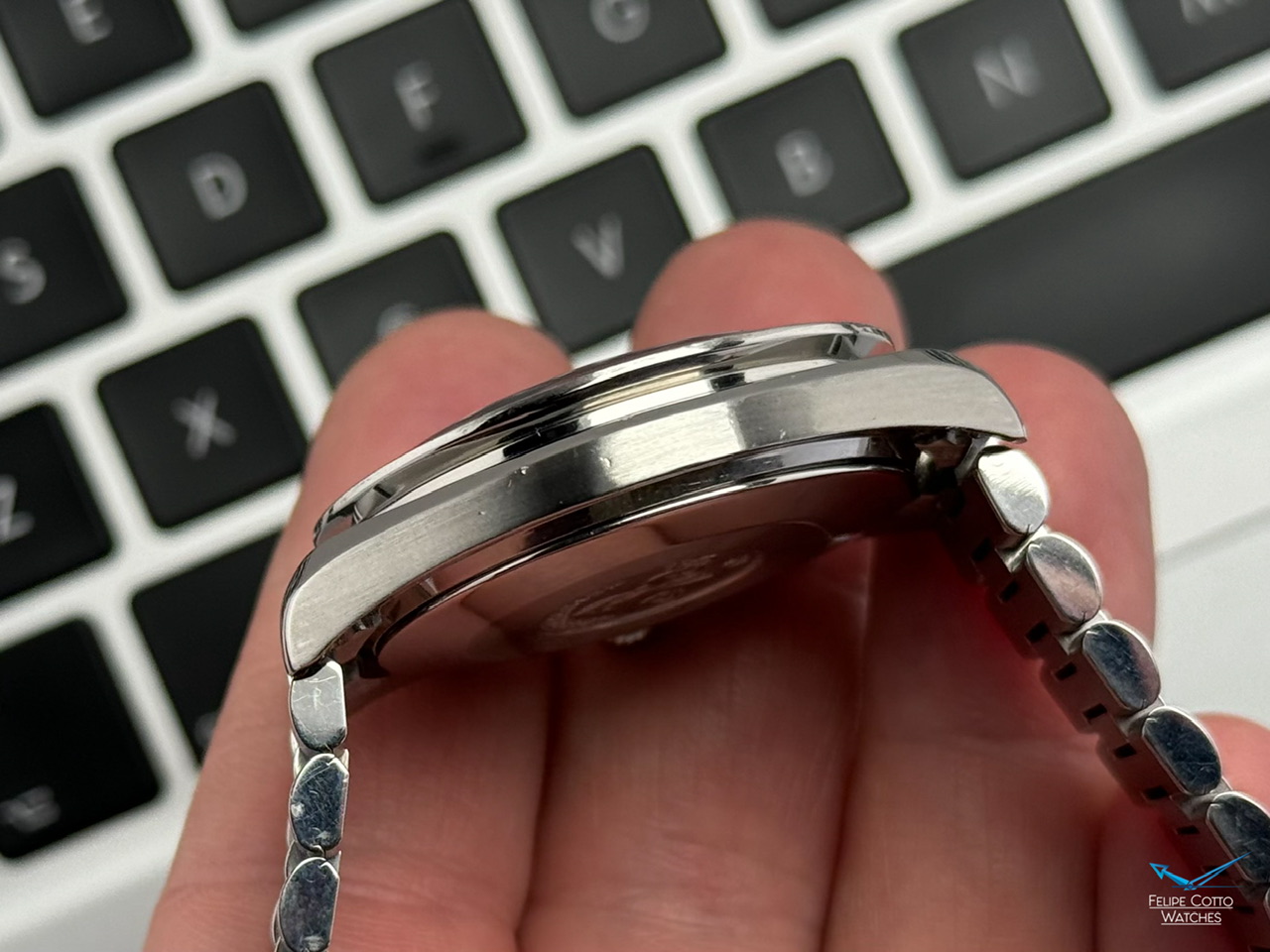 Stalowa koperta w rozmiarze 39mm nie licząc koronki. Zachowana w bardzo dobrym stanie z normalnymi, delikatnymi śladami używania.