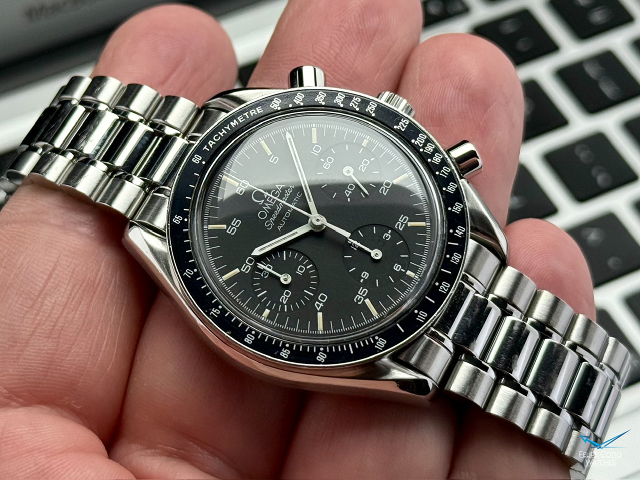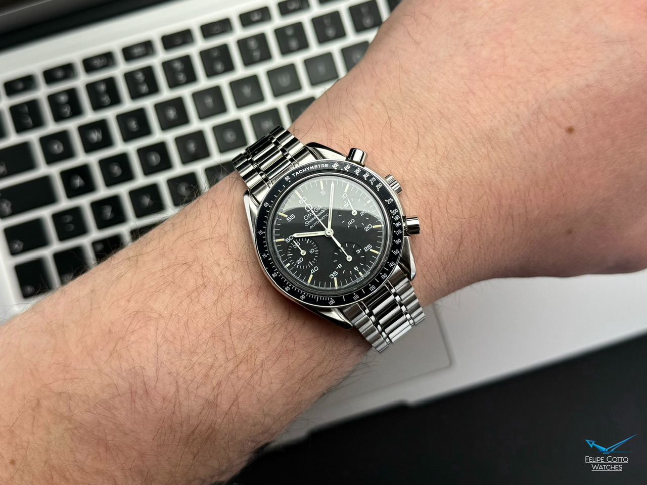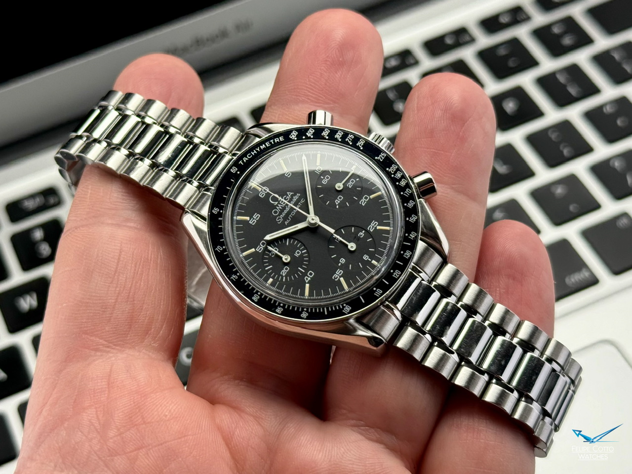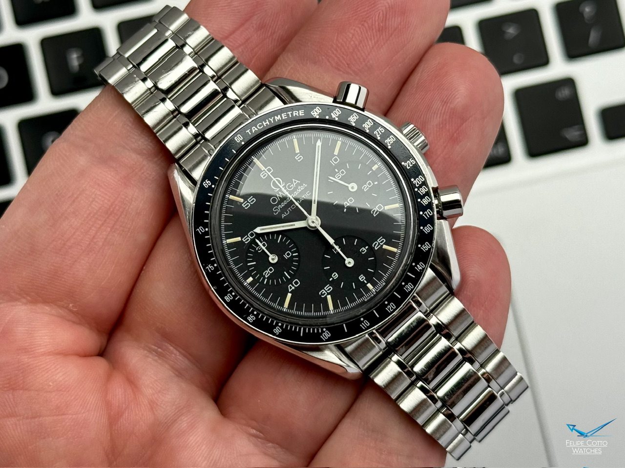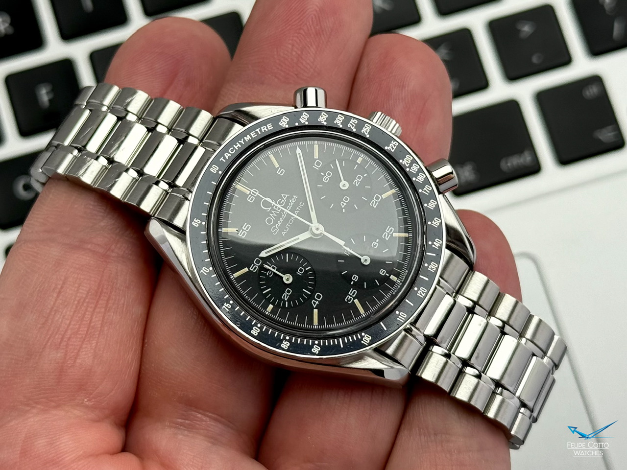 Stalowa koperta w rozmiarze 39mm nie licząc koronki. Zachowana w bardzo dobrym stanie z normalnymi, delikatnymi śladami używania.