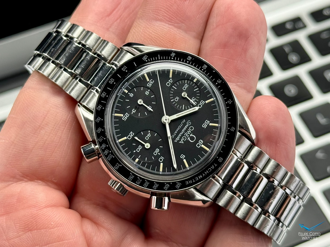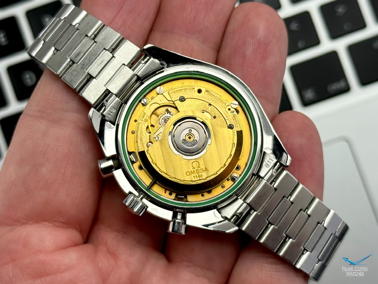 W środku mechanizm automatyczny cal. 1140. Sprawny, na dobrym chodzie (ostatnie zdjęcie), chronograf działa bez zarzutu, jednak z nieznaną historią serwisiwą.