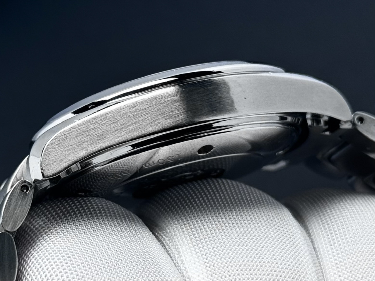 Koperta stalowa w rozmiarze 42mm nie licząc koronki. Zachowana w dobrym stanie, z normalnymi śladami używania, szczególnie na polerowanej lunecie.