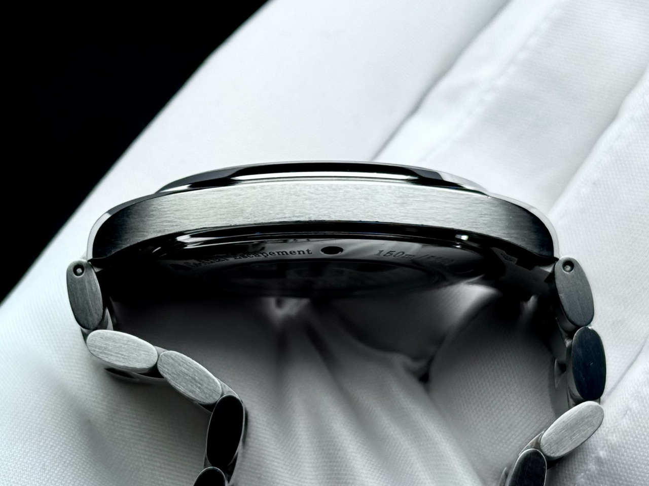 Koperta stalowa w rozmiarze 42.2mm nie licząc koronki. Zachowana w świetnym stanie, z oryginalnymi szlifami i jedynie delikatnymi śladami używania.
