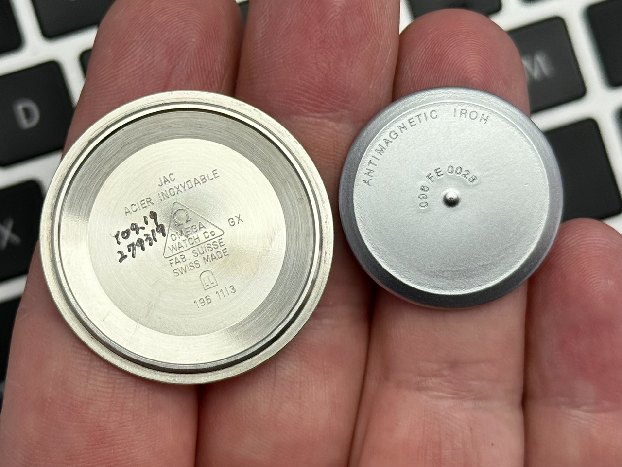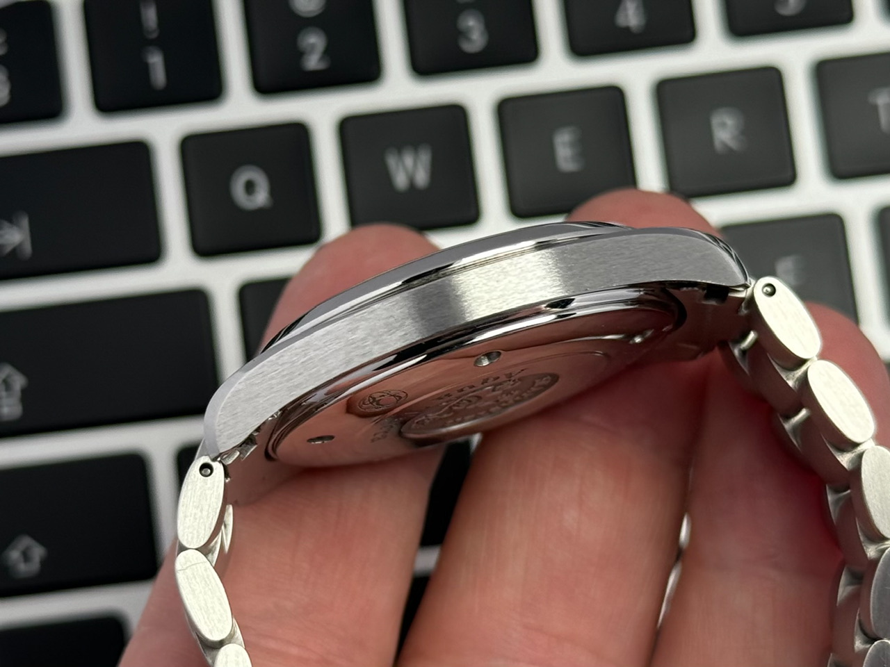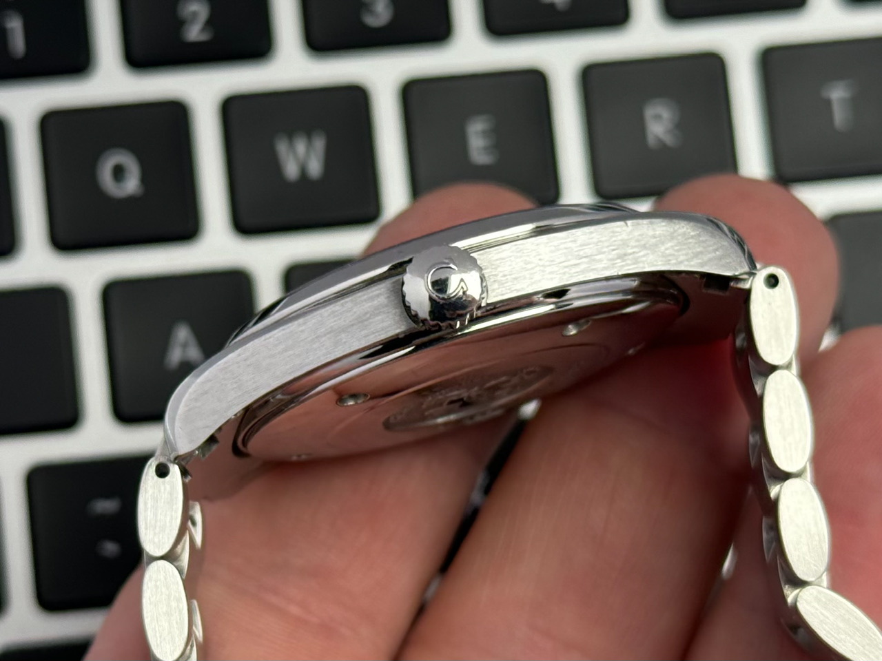 Koperta stalowa w rozmiarze 39mm nie licząc koronki. Zachowana w bardzo dobrym stanie, z delikatnymi śladami używania.