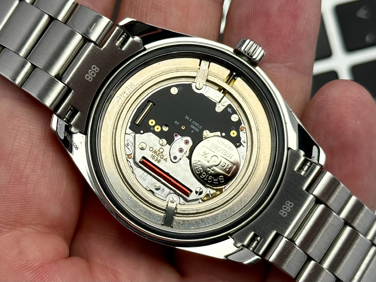 Mechanizm kwarcowy cal. 1538 całkowicie sprawny, ze świeżą baterią.