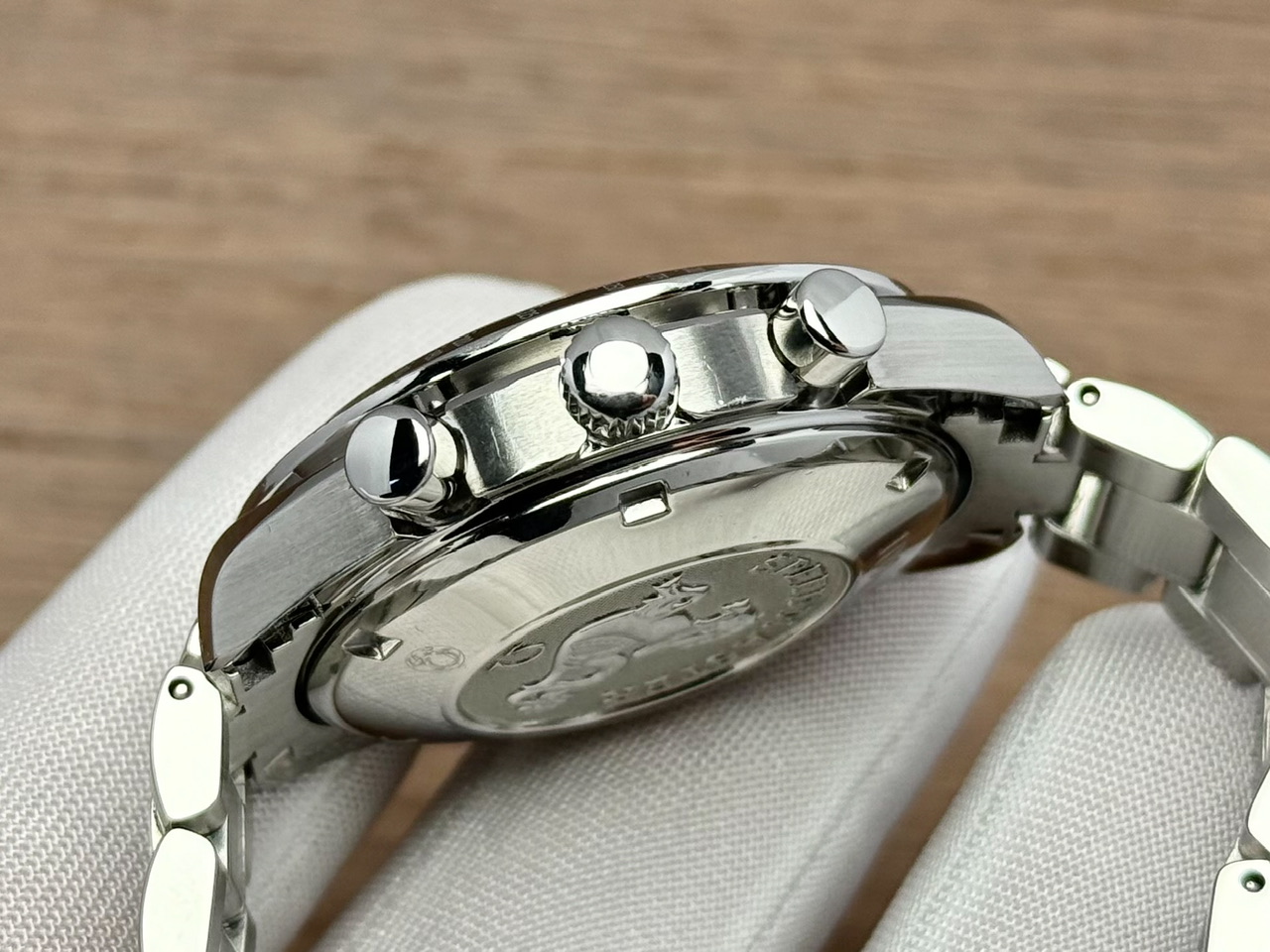 Koperta stalowa w rozmiarze 40mm nie licząc koronki. Zachowana w bardzo dobrym stanie, z jedynie delikatnymi śladami używania.