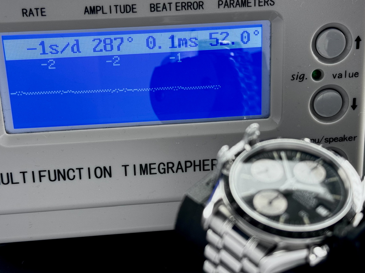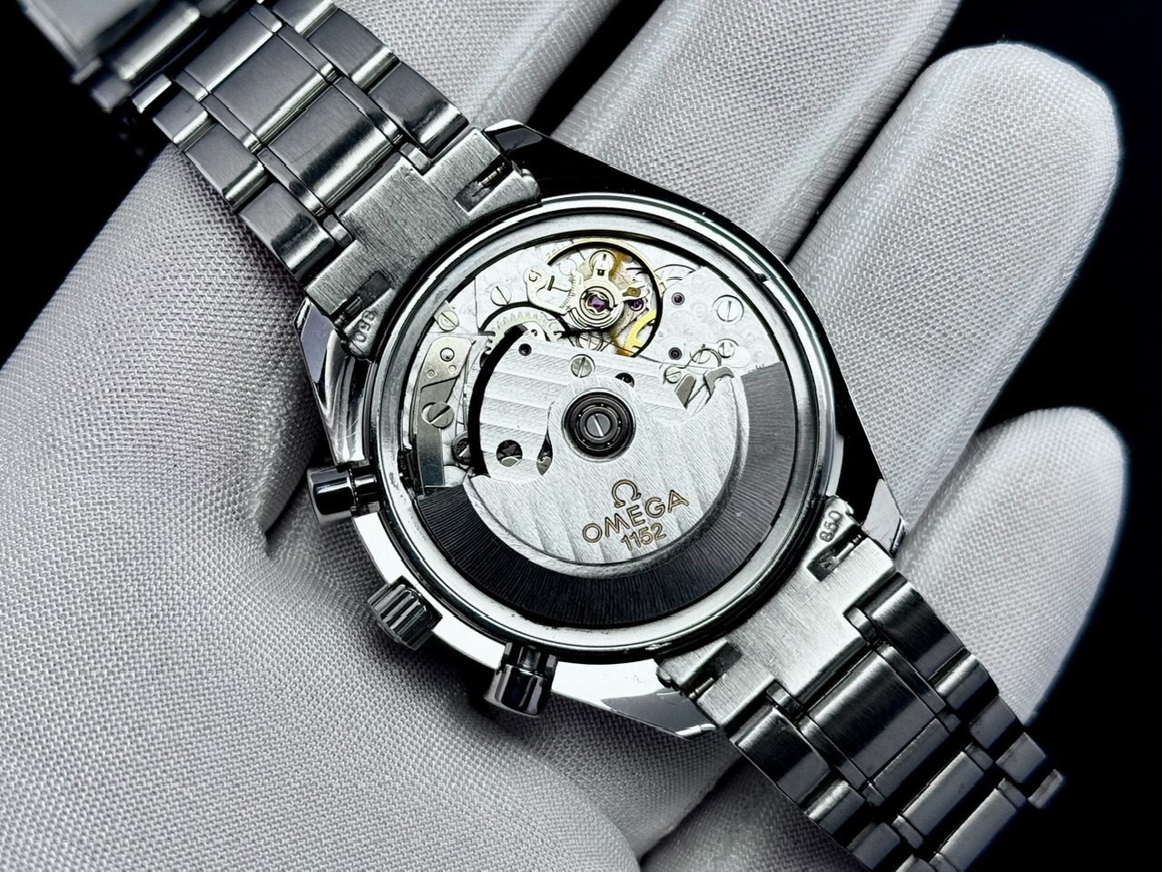 W środku mechanizm automatyczny cal. 1152. Całkowicie sprawny, na dobrym chodzie (ostatnie zdjęcie), funkcje chronografu działają bez zarzutu, jednak z nieznaną historią serwisową.